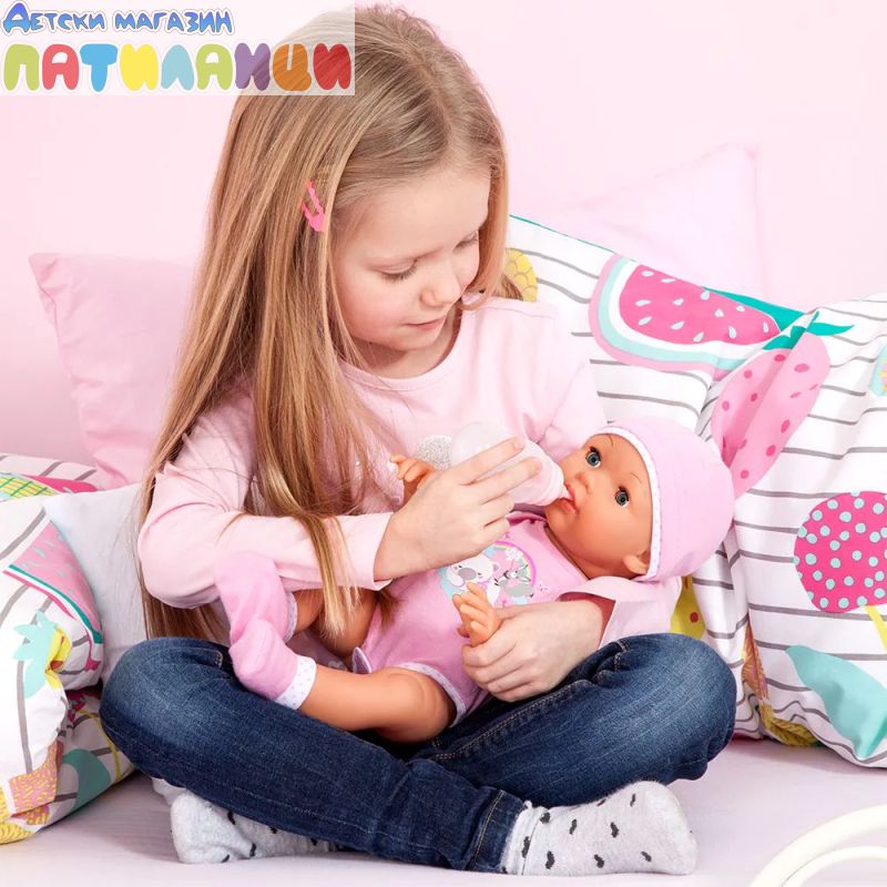• Ако натиснеш дясната ръка на куклата, ще чуеш сладките бебешки звуци, които издава.
