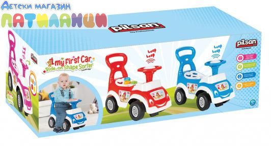 Детската пластмасова кола за яздене е с дизайн, който допринася за развитието на моториката и баланса на детето.