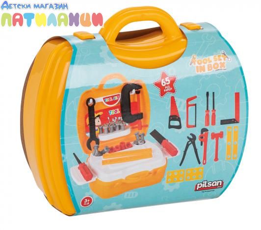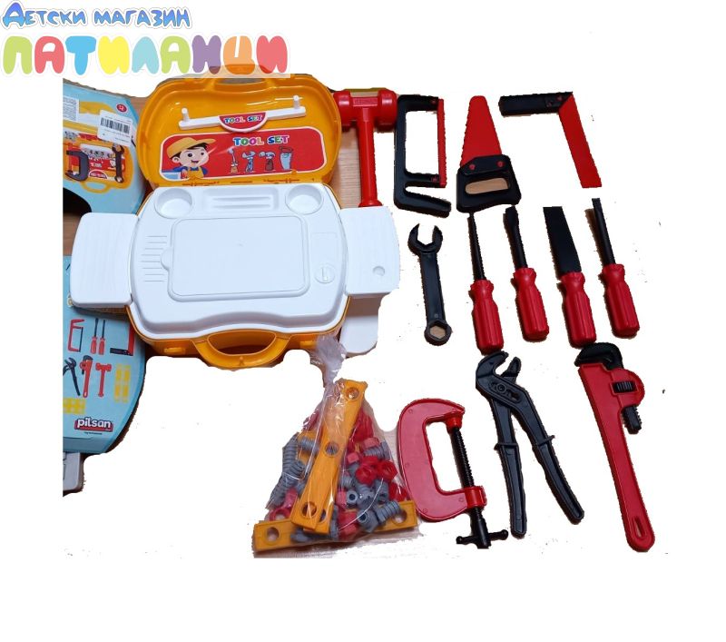 Събран в удобен за носене куфар, комплектът с инструменти на Pilsan ще предостави на Вашето дете възможност за часове забавни игри прекарани в ремонтни дейности у дома или навън.