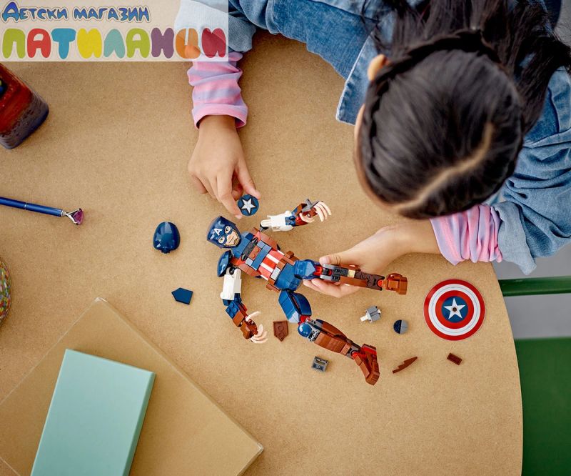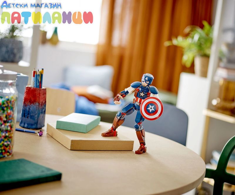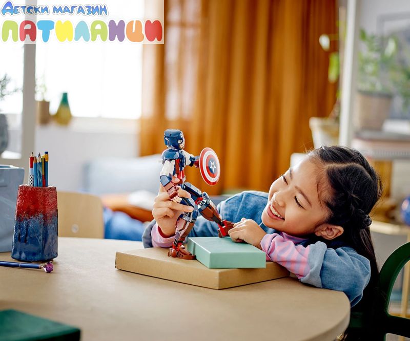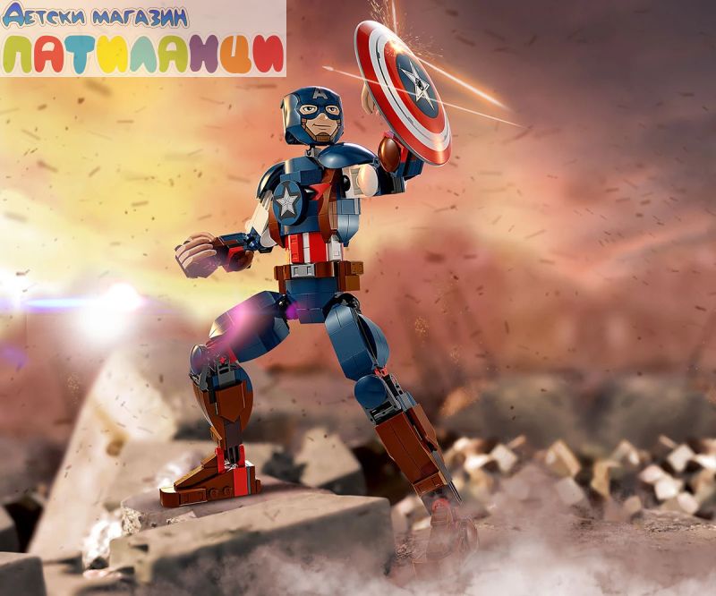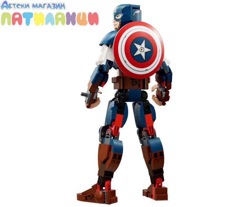 Супервойникът на Marvel – фигурата от 310 части разполага с подвижни стави на раменете, ръцете, таза и краката и включва известния щит на героя, който се прикрепя към ръцете или гърба му;