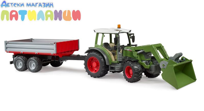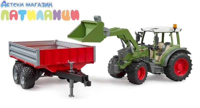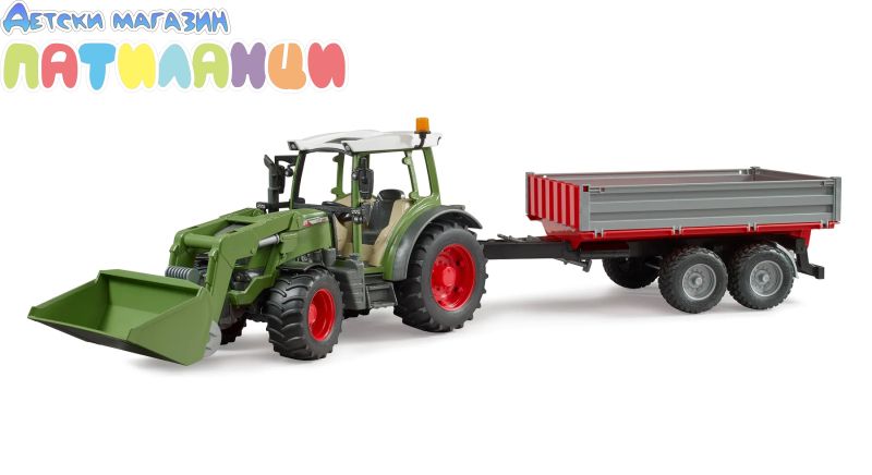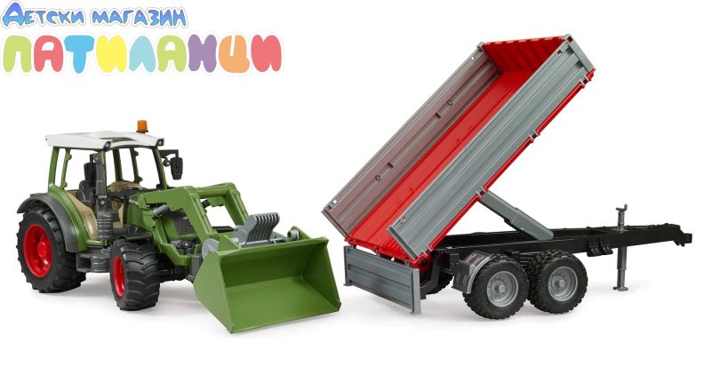 Трактор Fendt Vario 211 с челен товарач и самосвално ремарке BRUDER 02182