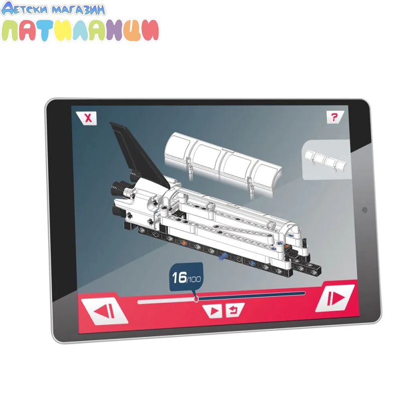 Механичната лаборатория с игрална система за конструиране, която позволява на децата да създадат модели с тематичен дизайн на истинска совалка от NASA.