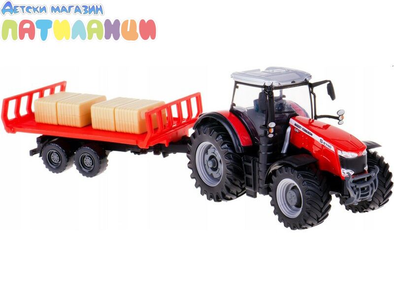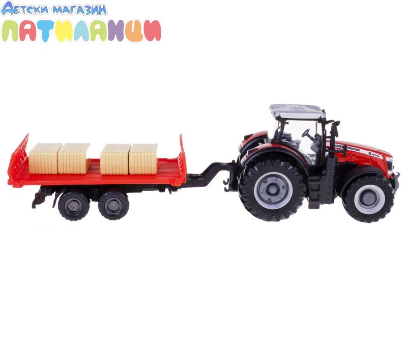 Трактор с ремарке за бали Massey Ferguson 8740S Burago
