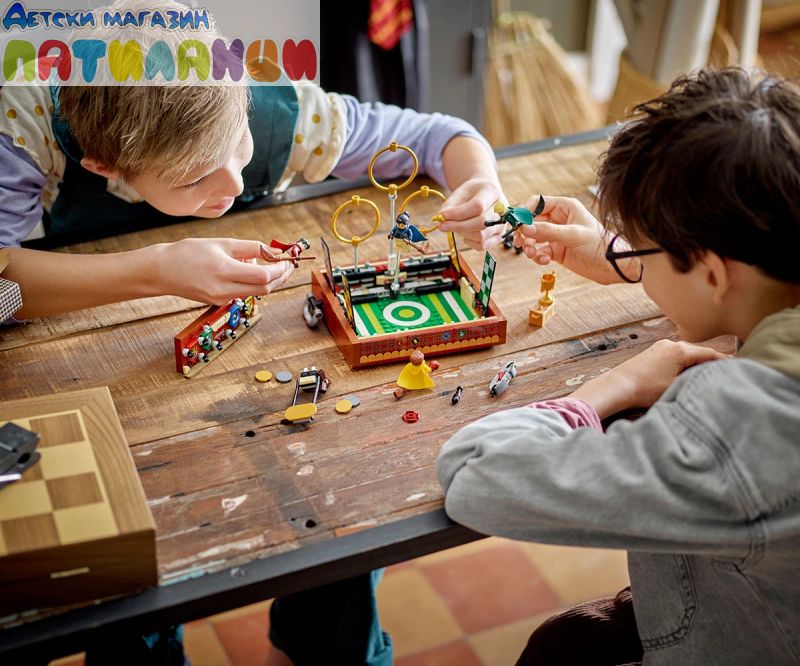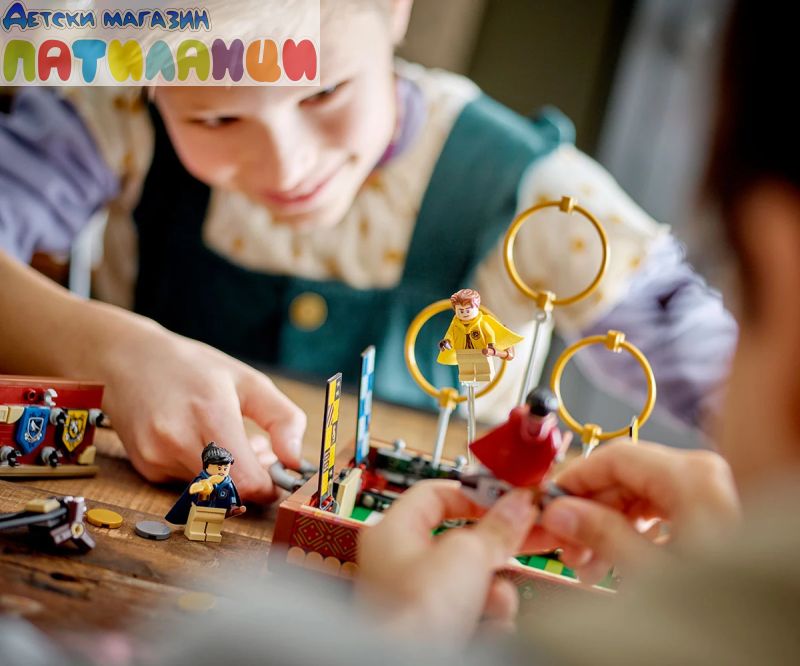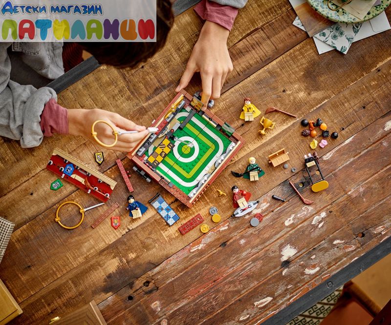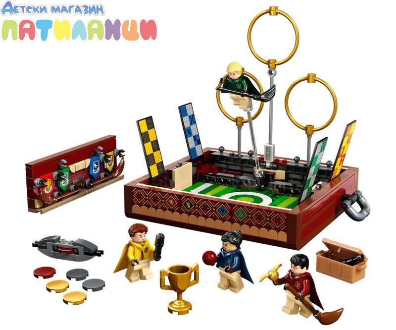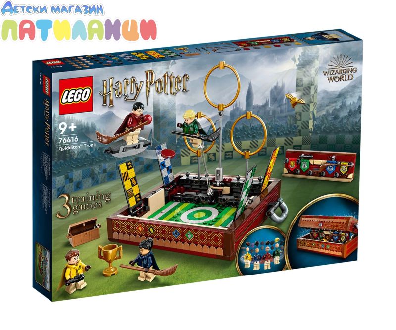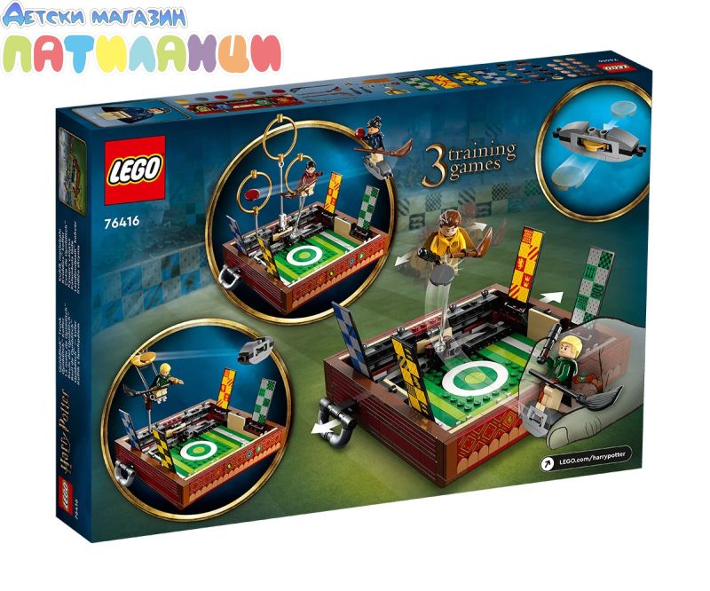 Детето ще се радва да построи магическия LEGO® Harry Potter™ Куидич сандък (76416), която се отключва, за да разкрие игрално поле за куидич, знамена на домовете в Хогуортс и всичко необходимо за игра на куидич – самостоятелно или с 2 играчи. Герои с възможност за персонализиране Страхотен подарък за фенове на Хари Потър на възраст над 9 години, комплектът включва минифигури на Хари Потър, Драко Малфой, Седрик Дигъри и Чо Чан, плюс 10 допълнителни глави (6 различни цвята на кожата) и 10 допълнителни прически за създаване на уникални играчи. Кутията също така съдържа оборудване за организиране на 3 различни игри по куидич: стрелба с куофъла през обръча, изстрелване на блъджърите към бияча и хващане на златния снич. Когато играта приключи и купата на домовете бъде дадена, всичко се опакова в сандъка и децата могат да го вземат със себе си за игра в движение. Нов начин за конструиране Осигурете на вашето малко дете лесно и интуитивно строително приключение с приложението LEGO Builder. С него то може да мащабира и завърта 3D моделите, да записва комплекти и да проследява напредъка си.
