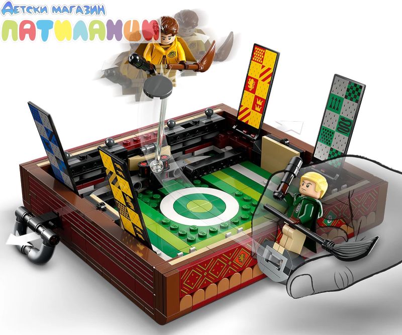 Феновете на Хари Потър могат да играят куидич със сандъка от тухлички на LEGO®, който се отключва, за да разкрие игрално поле за куидич и минифигури с възможност за персонализиране.