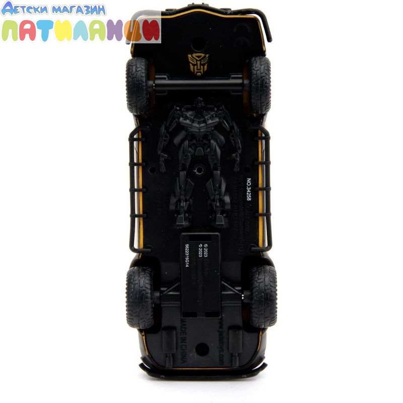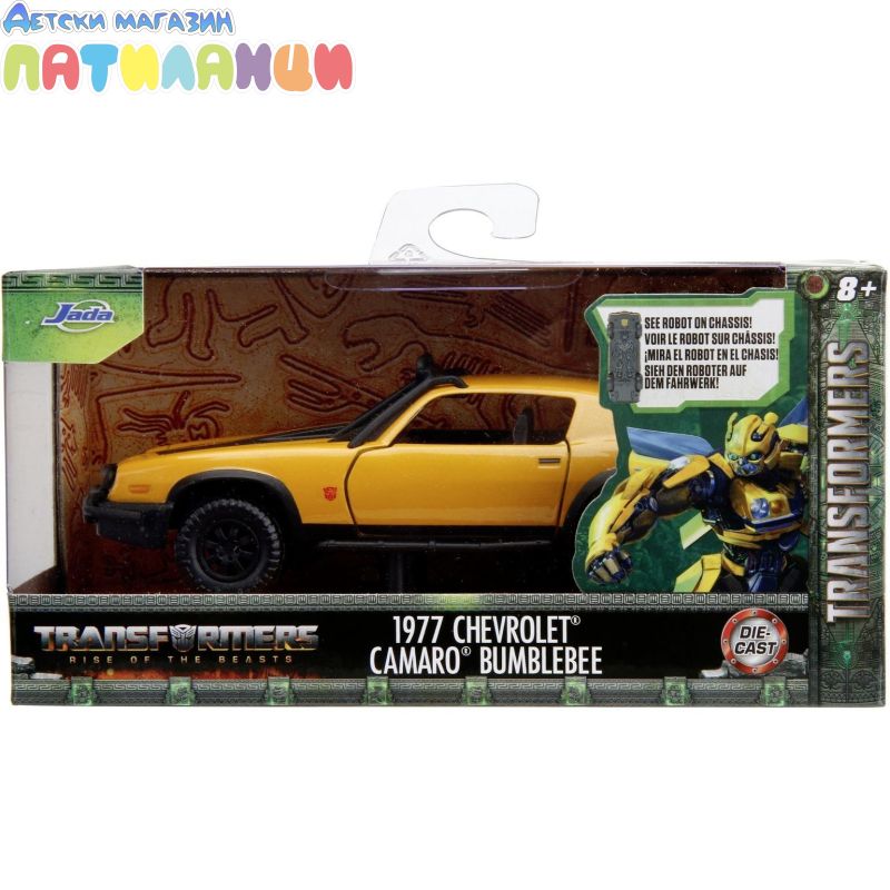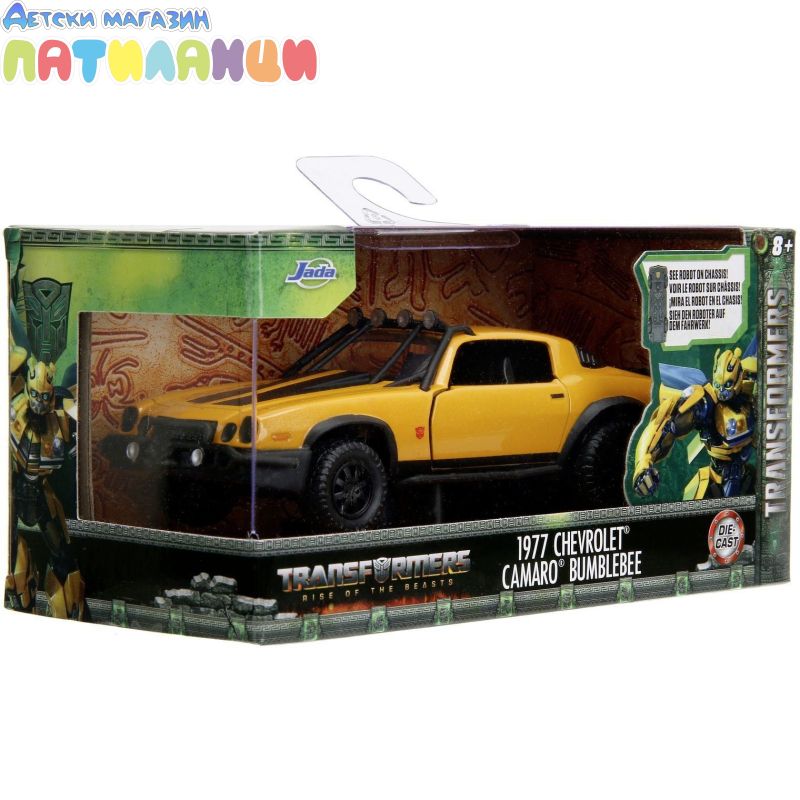 Jada представя лицензирана кола "Transformers. Bumblebee", от поредица от фантастични филми за автомобили трансформери. Това е умалено копие в мащаб 1:32 на легендарния Bumblebee, базиран на Chevy Camaro от 1977 г. Каросерията на колекционерската кола е изработена по технологията Die-Cast (леене под налягане). Автомобилът е с внимателно детайлна каросерия и интериор, представени в емблематичния жълто и черен цвят, има подсилена рамка, спойлер, прозрачни фарове и предно стъкло, седалка, волан, торпедо, гумирани големи джанти и др. Вратата се отваря и ви позволява да разгледате по-отблизо интериора. Механизмът за свободен ход осигурява плавно движение. Феновете на филма "Transformers: Descent of the Beastbots" ще се зарадват на легендарната кола Autobot Bumblebee.