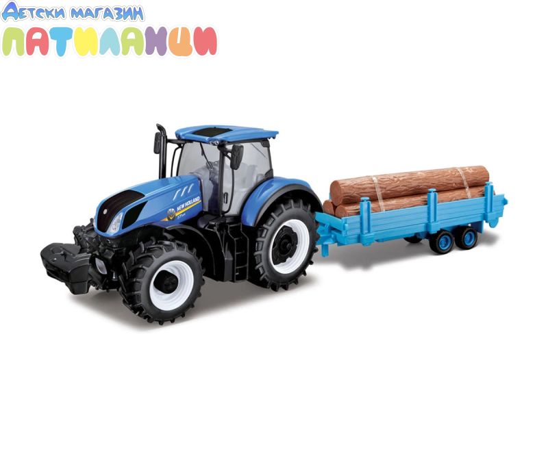 Име: Bburago - New Holland Farm: Трактор 1/32, с празно ремарке за сено