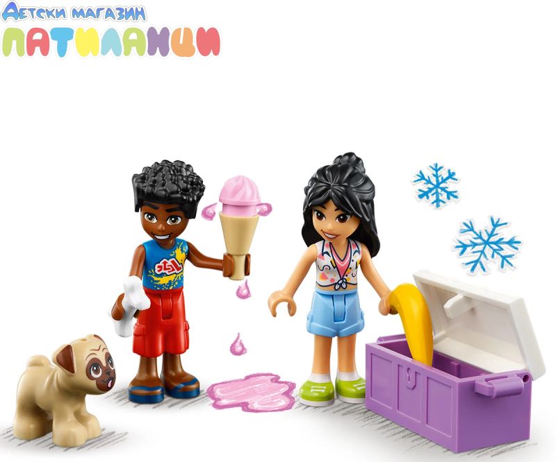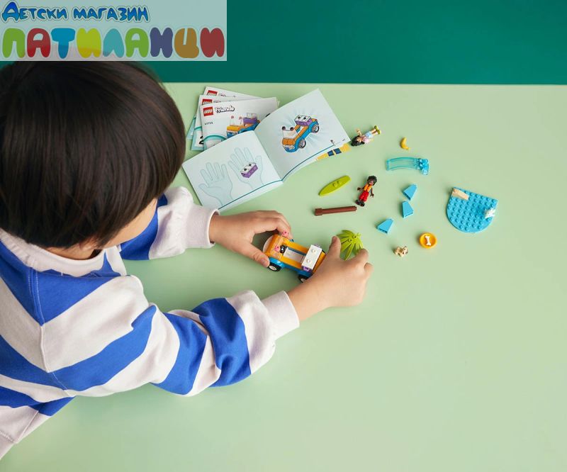 Енергията и ентусиазмът на Лиан я правят чудесен приятел на дружелюбния Зак. Аксесоарите включват охладител за храна с банан и сладолед. В комплекта има и играчка плажно бъги и вълна, плюс мопс и делфин. Вдъхновение за начинаещите строители Комплектите LEGO 4+ са създадени за бързо и удовлетворяващо строителство. Те се предоставят с полезна начална тухличка – здрава основа, върху която децата създават забавни сцени. Приложението LEGO Builder направлява вас и вашето дете в интуитивното строително приключение, като ви позволява да мащабирате и завъртате 3D моделите, да записвате комплекти и да проследявате напредъка си. Добре дошли в Хартлейк Сити от следващо поколение Децата могат да се сприятеляват, да откриват вълнуващи места и да разиграват реалистични приключения във вселената на LEGO Friends.