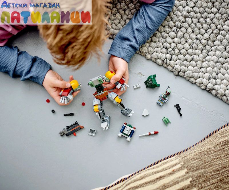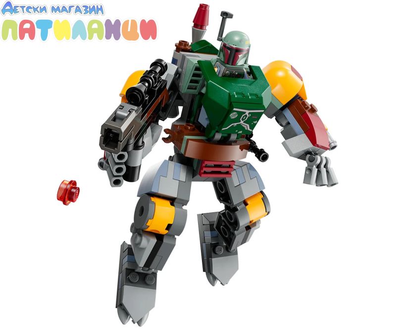 Запознайте се с малките деца с вселената на LEGO® Star Wars™ с подвижния робот на Боба Фет със стрелящ бластер и реактивна страница за конструиране.