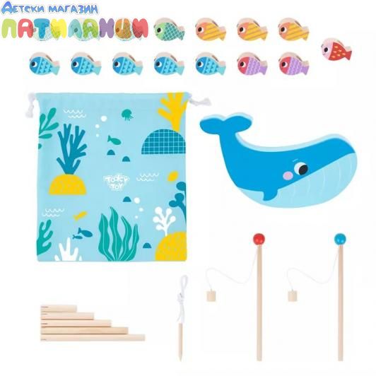 Дървената магнитна игра за баланс на Tooky Toy е креативно съчетание, което включва игра за баланс, игра за нанизване и магнитен риболов.