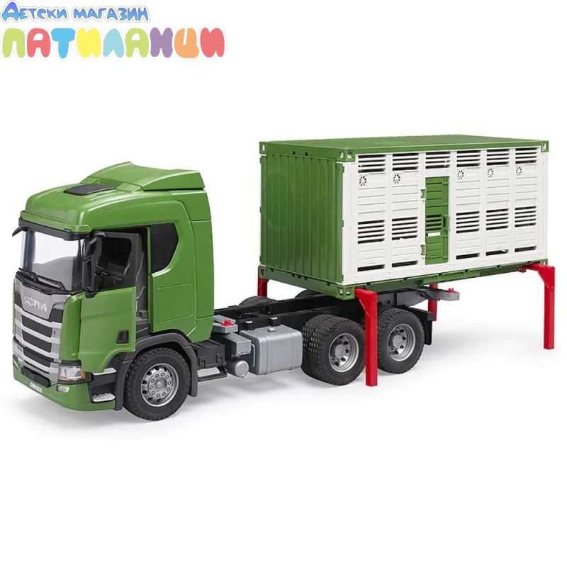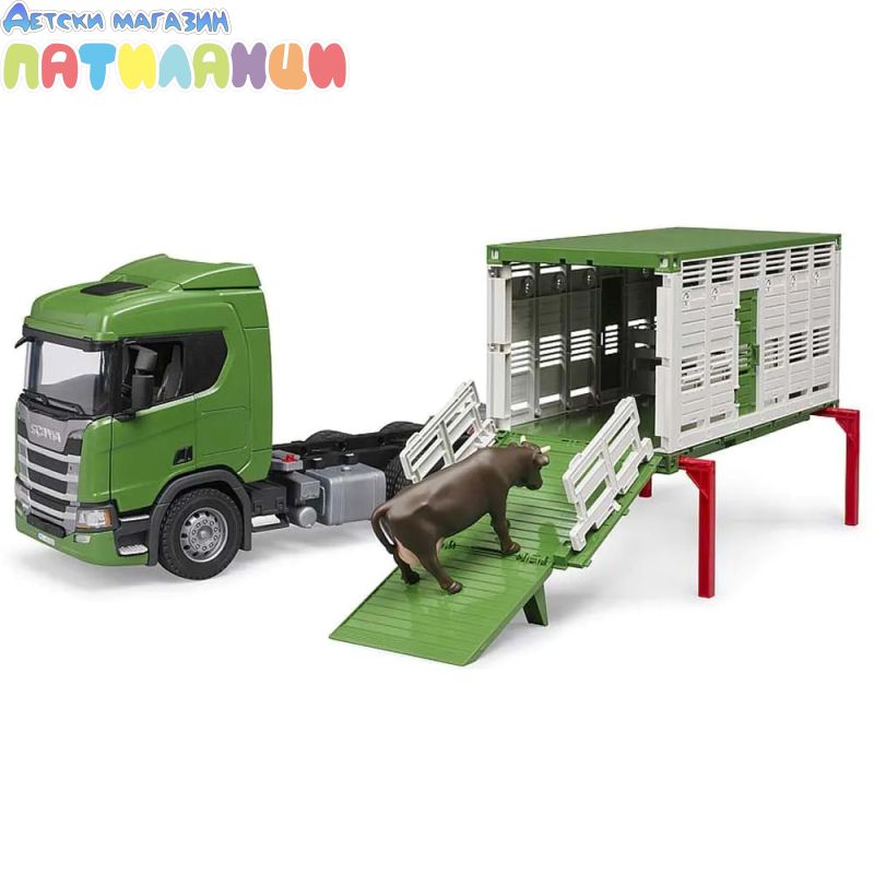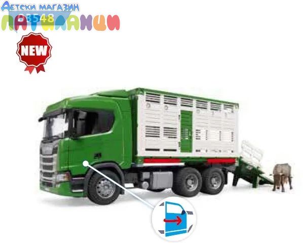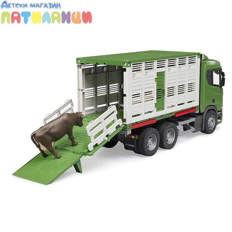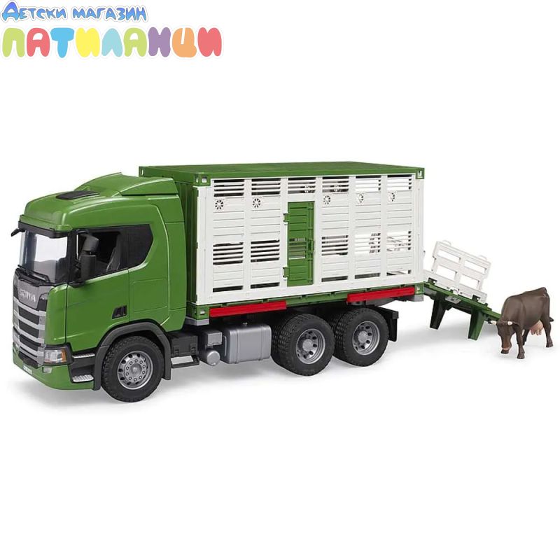 Камион за добитък Scania Super 560R с 1 крава BRUDER 03548