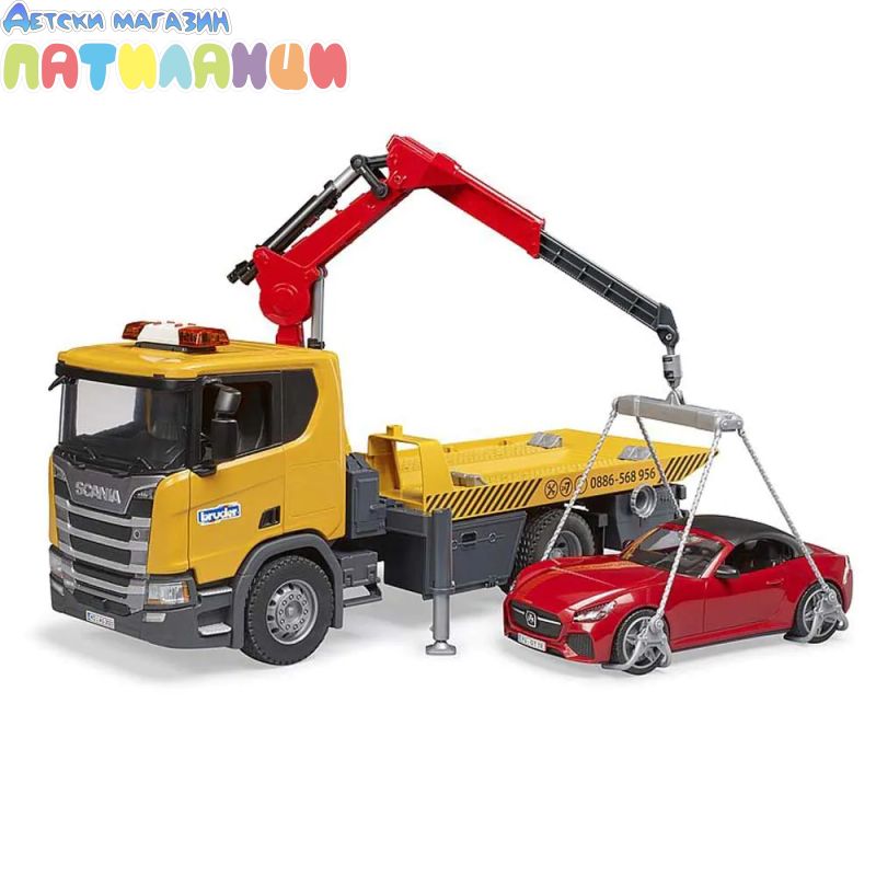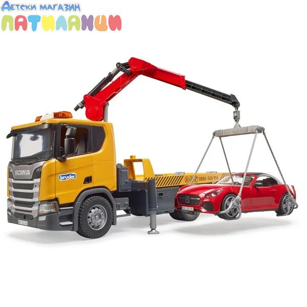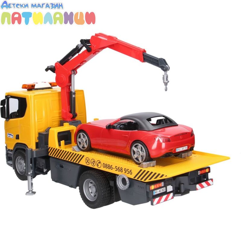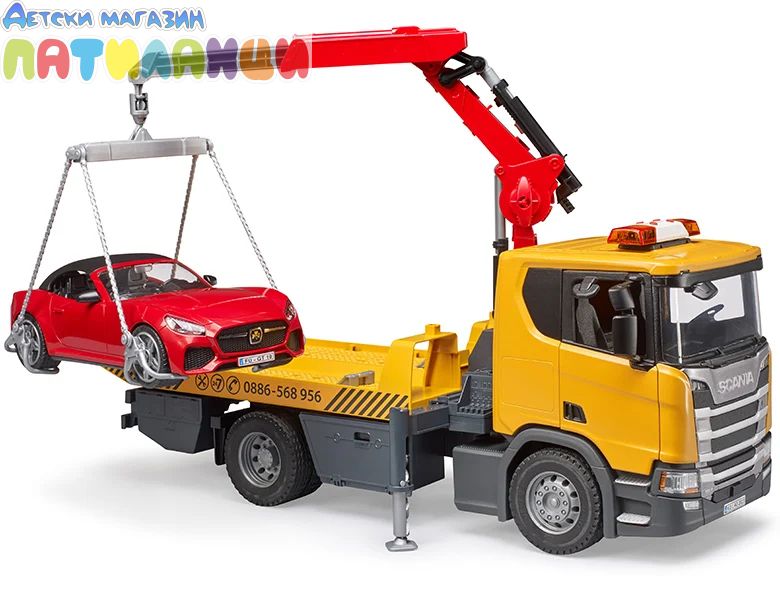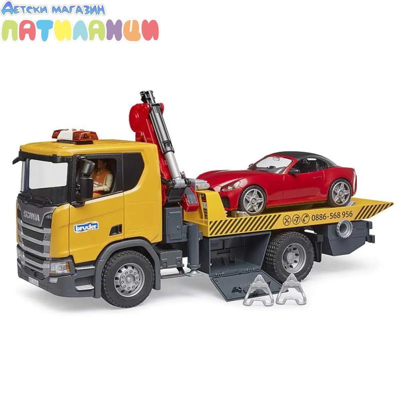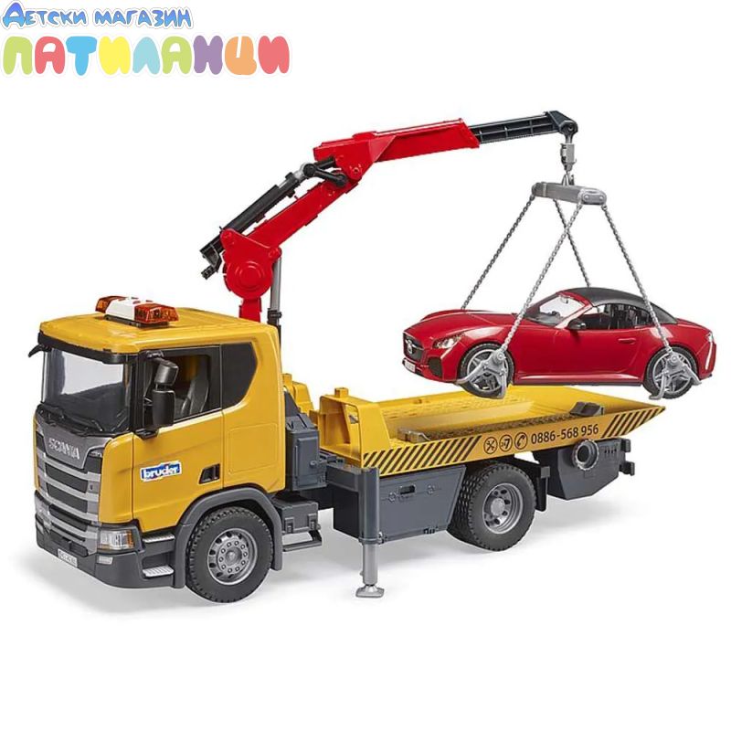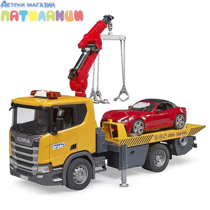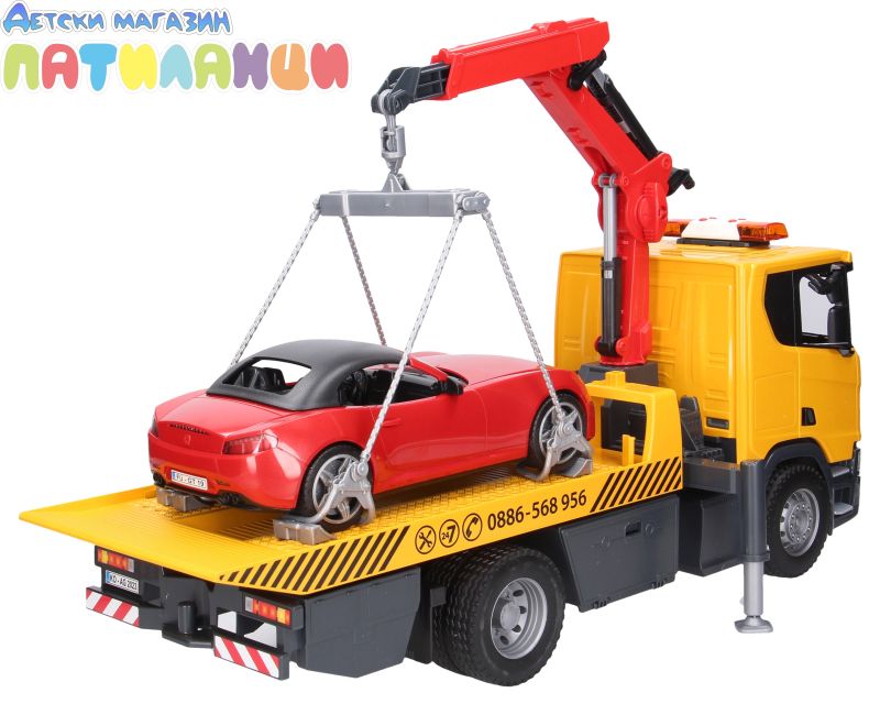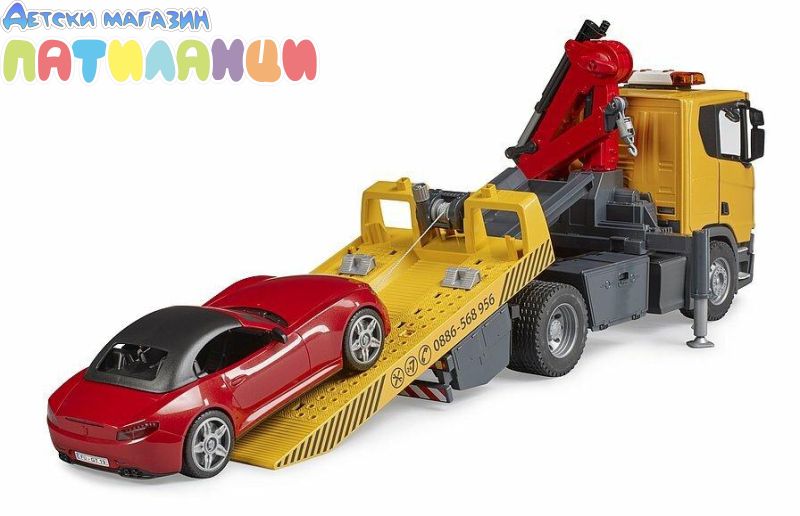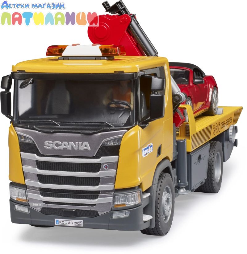 Камион паяк с платформа Scania Super 560R с кола Роудстър Bruder 03552