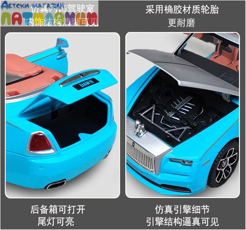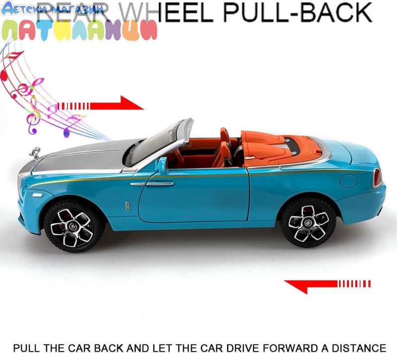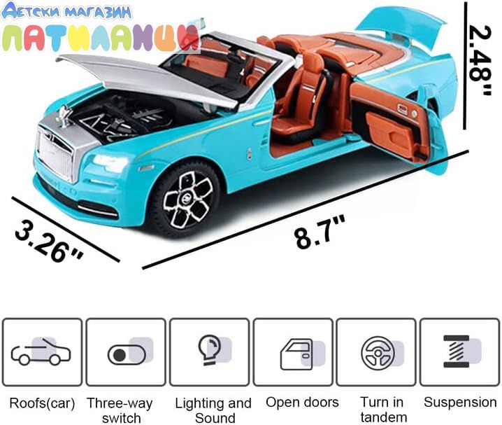 Метален автомобил Rolls Royce Phantom със звук и светлини 1/24 син