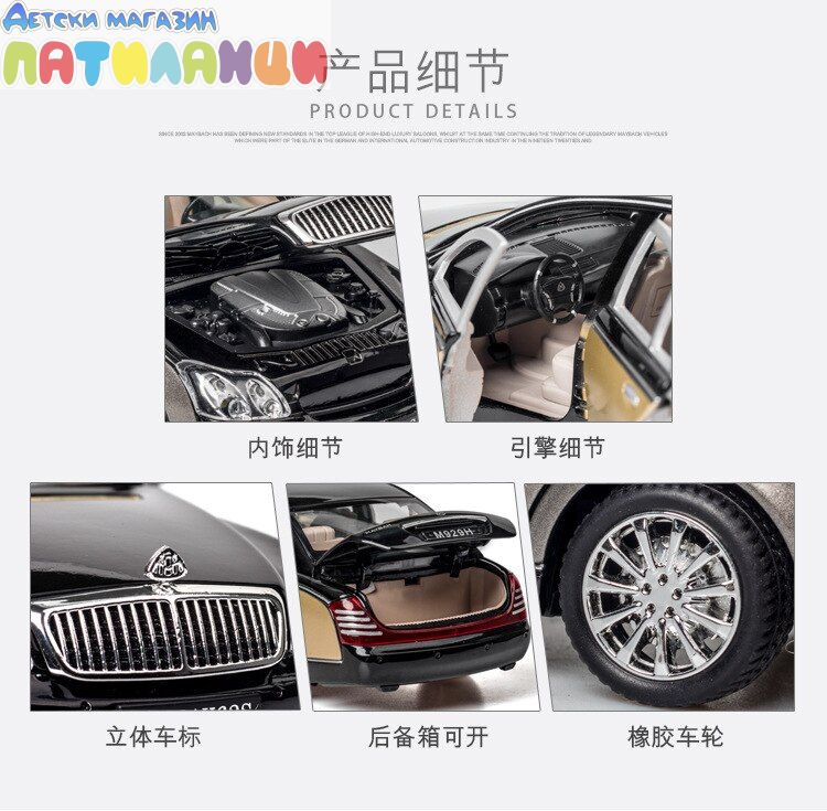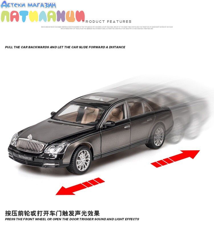 Метален автомобил Maybach със звук и светлини 1/24 сребрист