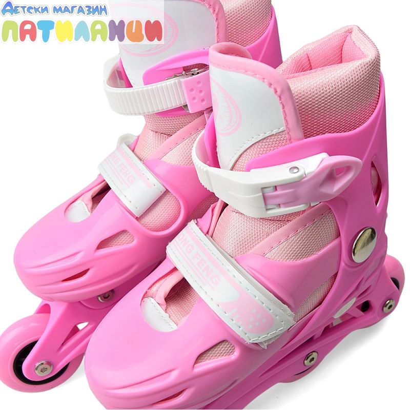 Регулируемите ролери са подходящи за деца на възраст над 3 години и тегло до 60 кг. Тези детски ролери имат 4 PU с лагери ABEC-5. Този модел е снабден със система за регулиране на размера на четири етапа: Ролерите са с лека алуминиева основа и спирачка.Закопчаването е с връзки, Velcro лента и двойно подсигурена катарама.