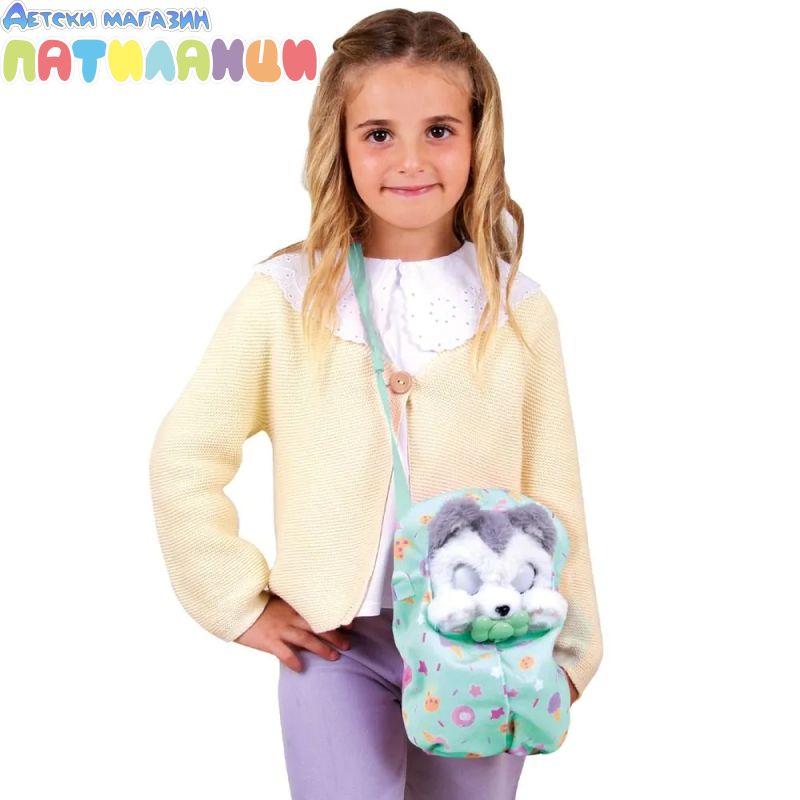 Прозявка! Време е за сън. Постави биберона обратно в устата на твоето кученце и то ще заспи, докато издава още супер сладки звуци. Вземай твоето кученце със себе си навсякъде, като използваш дръжката на одеялото. Друга възможност е да го сгънеш, за да създадеш сладка чанта за рамо!