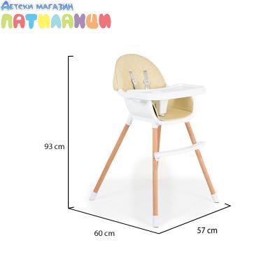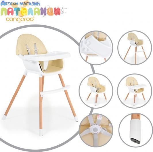 Дървен стол за хранене Cangaroo Gelato 2в1 Бежов