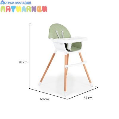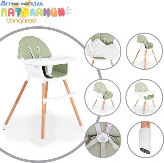 Дървен стол за хранене Cangaroo Gelato 2в1 мента