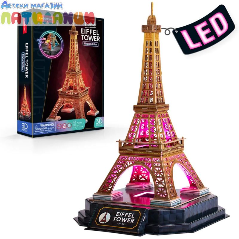 Пъзел 3D Eiffel Tower Paris Night Edition с LED светлини CubicFun L534h