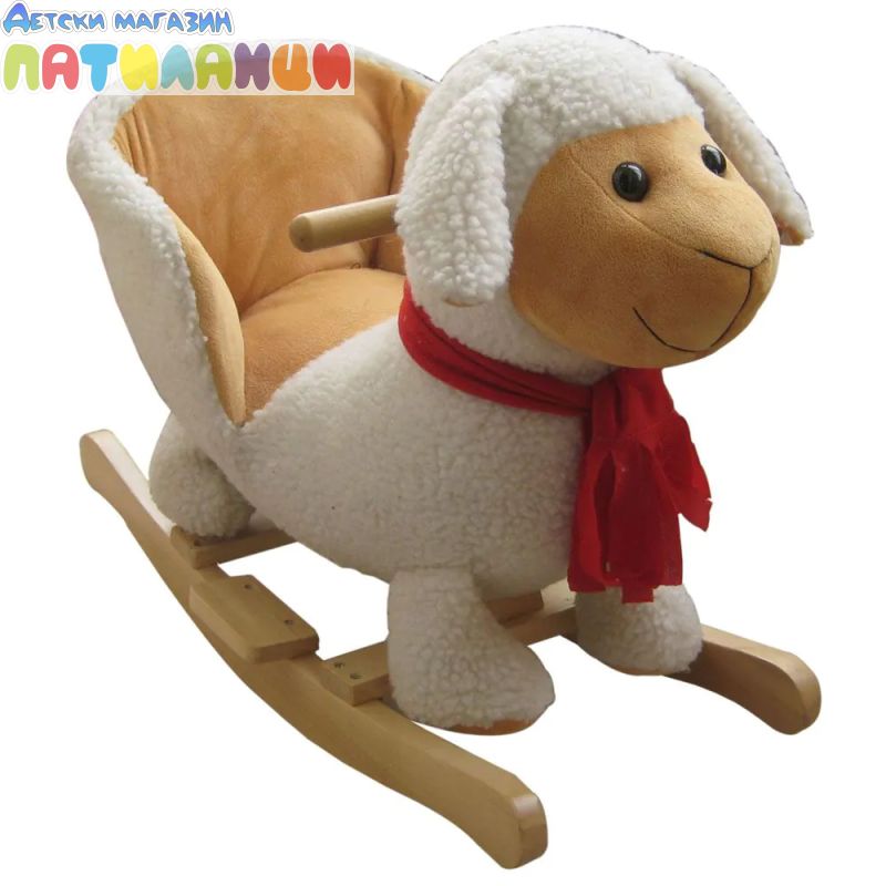 Вашите деца ще се радват да играят с нашата симпатична люлееща се овца! То ще бъде любимата им играчка и ще донесе комфорт и забавление. Люлеещото се животно притежава здрава метална рамка, мека подложка и плюшено покритие, както и солидна дървена основа. То е безопасно, удобно и идеално за децата ви. Люлеещата се овца е подходящо за деца на възраст над 12 месеца. Играчката се сглобява лесно.