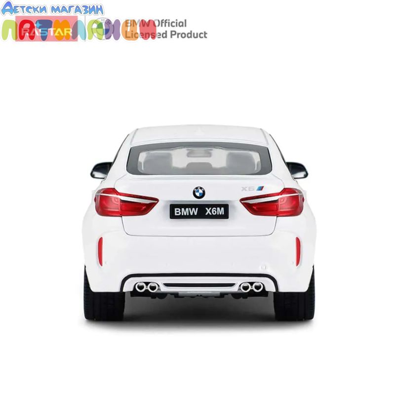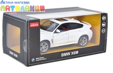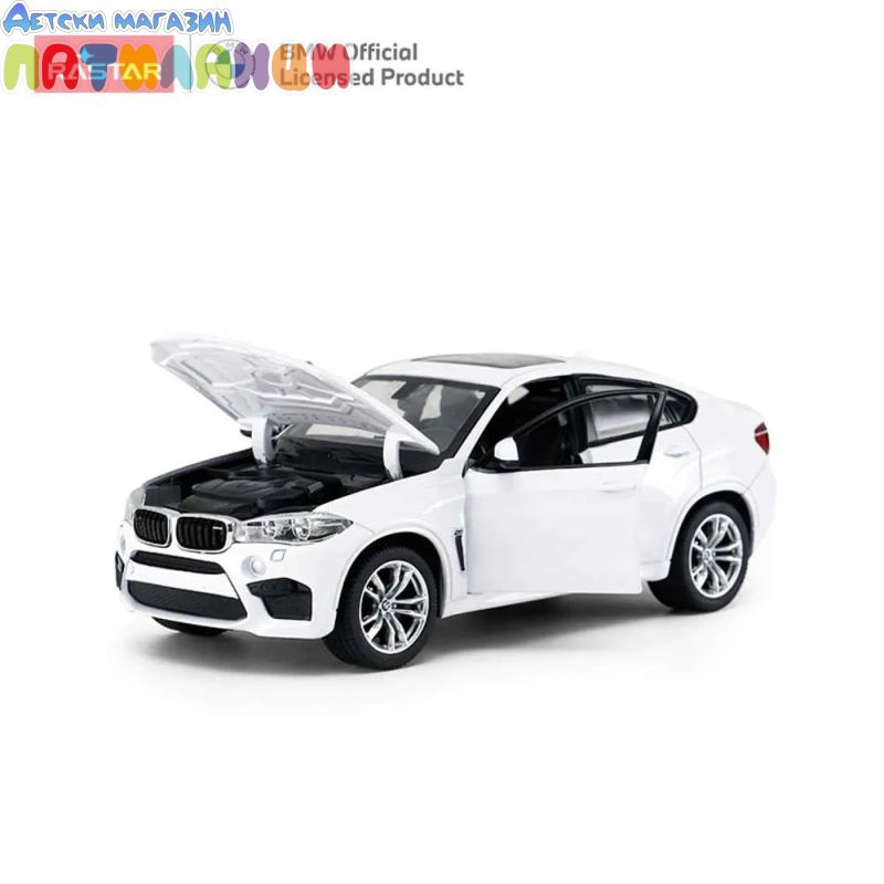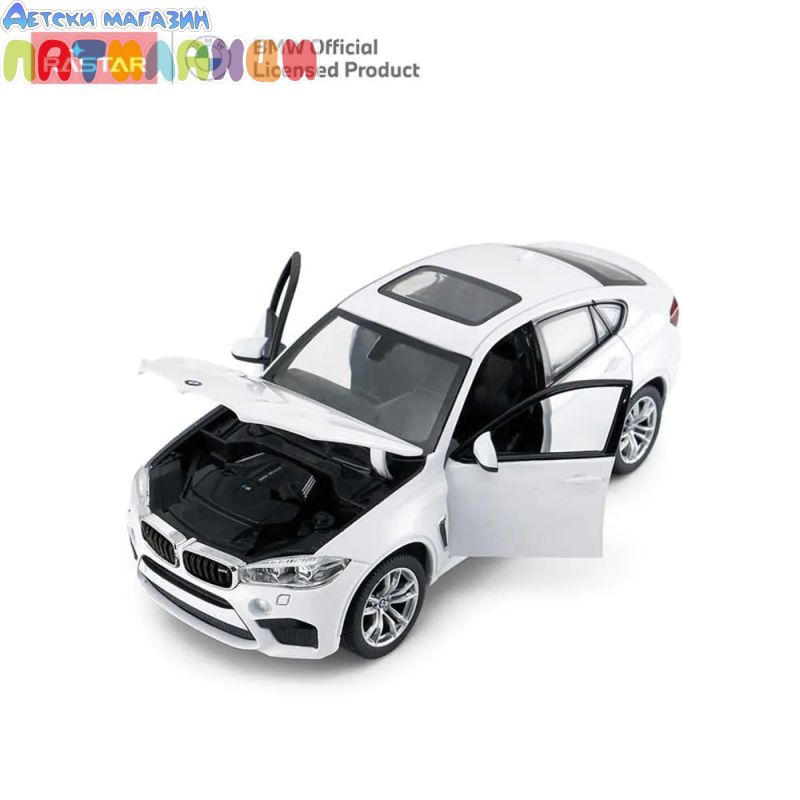 Джип BMW X6 M, изработен от метал и фина пластмаса за автентичен и вълнуващ външен вид. Официално лицензиран модел - колата е пълно копие на реалния автомобил. Отварящите се врати разкриват супер детайлен интериор! Предният капак се отваря, за да разкрие детайлен двигател.