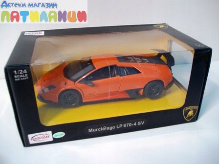 Официално лицензираният автомобил Murcielago LP670-4, точно копие в мащаб 1:24. Автентичен дизайн и завършващи детайли на оригиналния модел. Финият екстериор и подробният интериорен дизайн са възпроизведени за още по-реалистичен вид. Изработена от метал и с детайли от фина пластмаса. Отварящи се врати и свободно въртящи се колела.