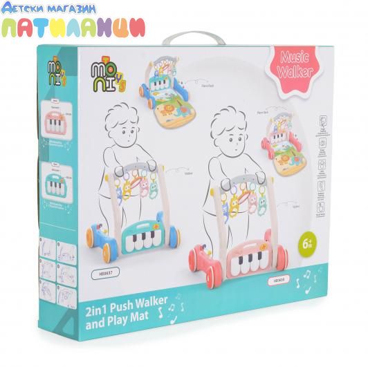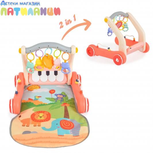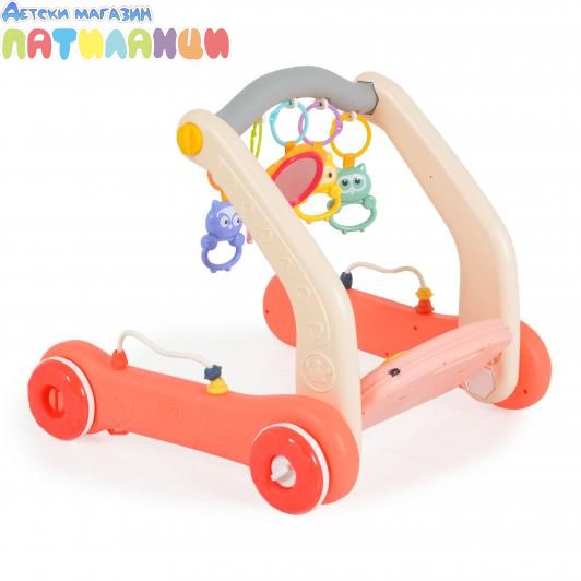 • Цветна, удобна, практична и мултифункционална, с музикален панел - тип "пиано" - предлага на най-малките разнообразни забавления, а в същото време развива способността на децата да балансират, да стоят и ходят самостоятелно;