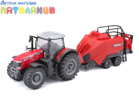 Bburago - Трактор с ремарке Лукс 10 см, Massey Ferguson 8740S