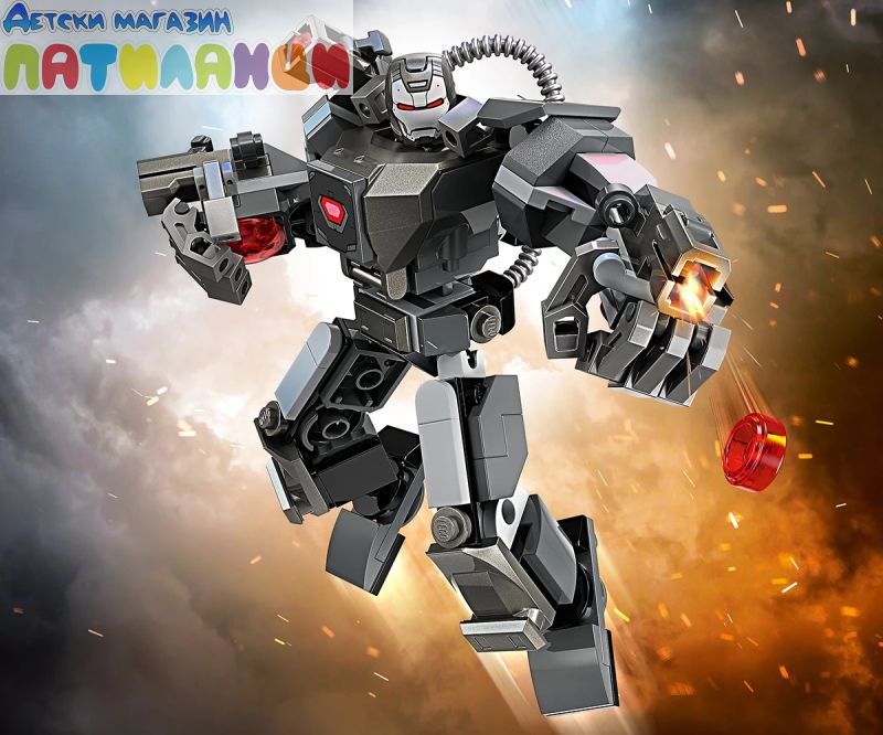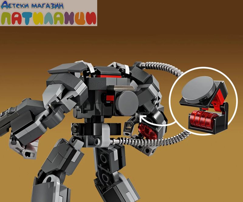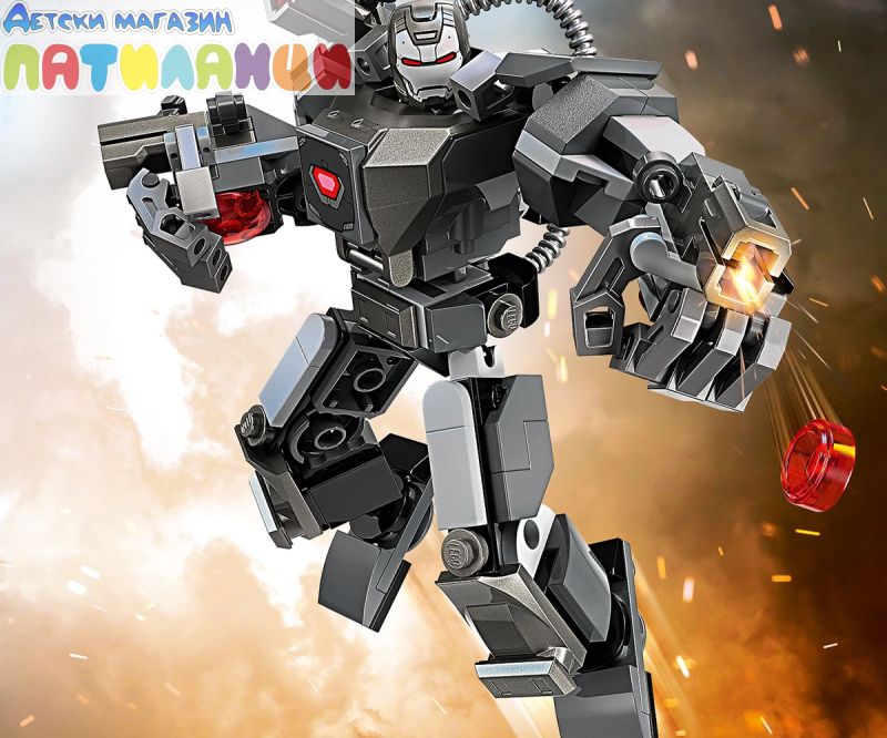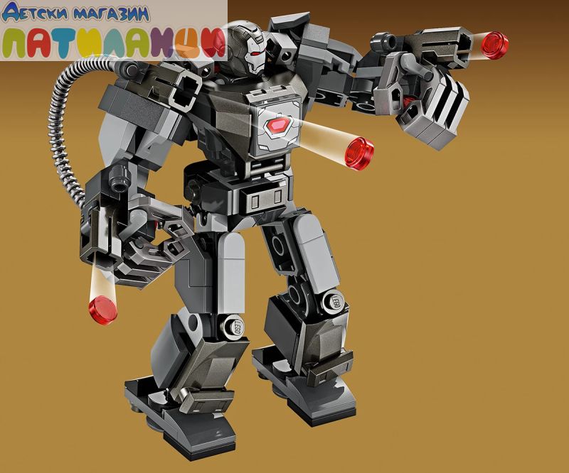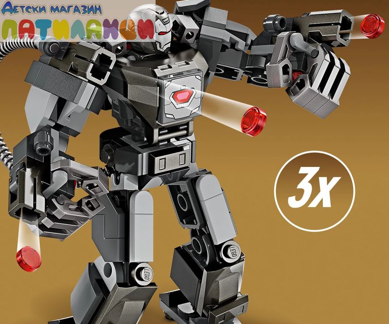 Гръдният кош на робота се отваря, за да разкрие кабина за минифигурата на Бойна машина. Има 3 оръдия – 1 върху рамото на робота и 2 в ръцете му – и кутия за съхранение на гърба му за допълнителни боеприпаси. Фигурата от Marvel има подвижни рамене, крака и ръце, така че феновете на Бойна машина и воините роботи да могат да се насладят на безкраен боен екшън. Децата могат да разширят още повече възможностите за игра, като комбинират играчката за конструиране с други роботи LEGO Marvel в гамата (продават се отделно). За допълнително цифрово забавление строителите могат да мащабират, да завъртат модели в 3D и да проследяват напредъка си с помощта на забавното, интуитивно приложение LEGO Builder.