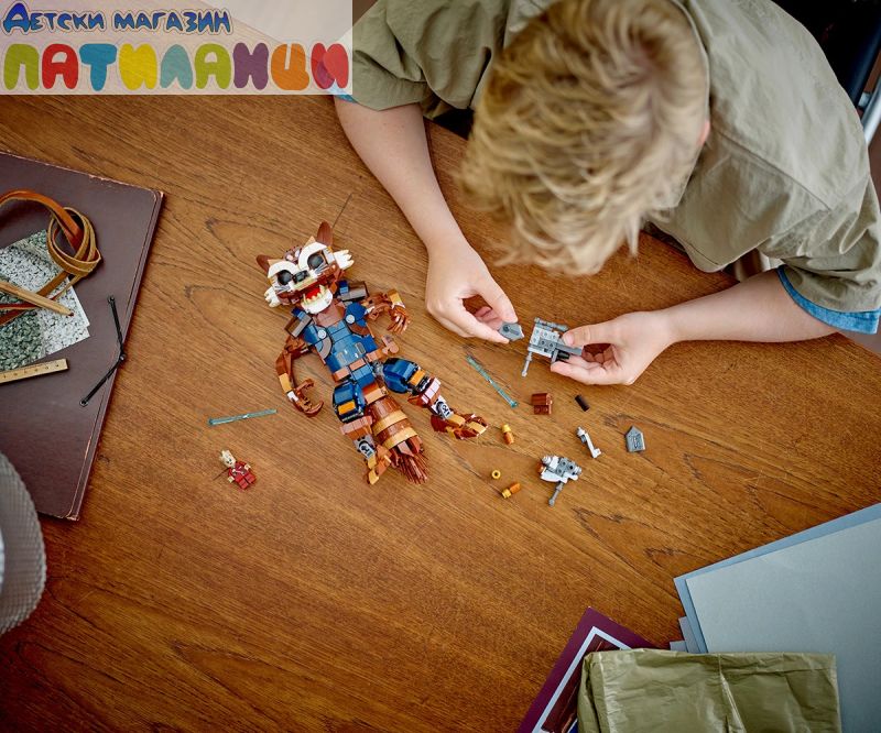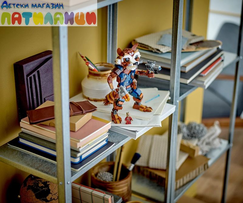 - LEGO® Подарък LEGO® за любители на филмите – феновете на екшън филми и Пазители на галактиката на Marvel Studios могат да се насладят на безкрайно забавление с напълно подвижната екшън фигура на Ракета с автентични детайли