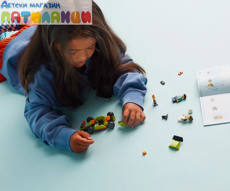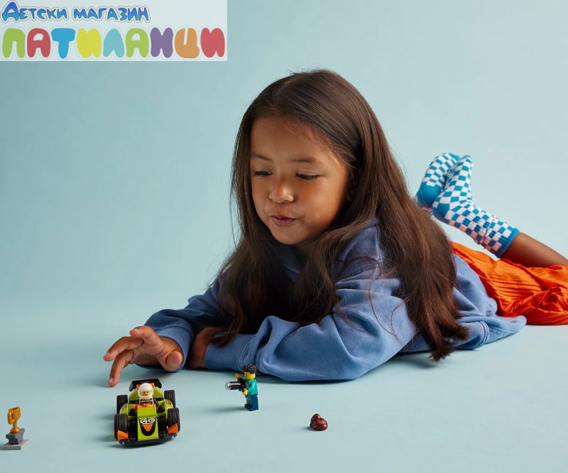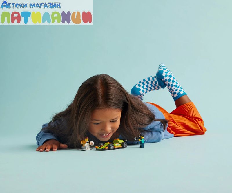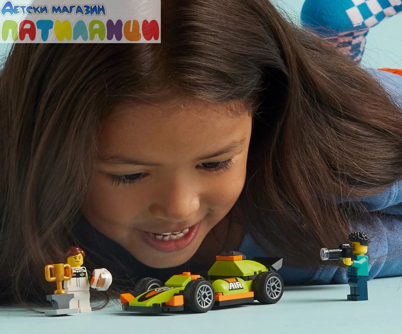 Състезателна кола за възраст над 4 години – нека състезателното забавление започне с комплекта за игра LEGO® City Зелена състезателна кола, включващ превозно средство за конструиране и игри на въображението