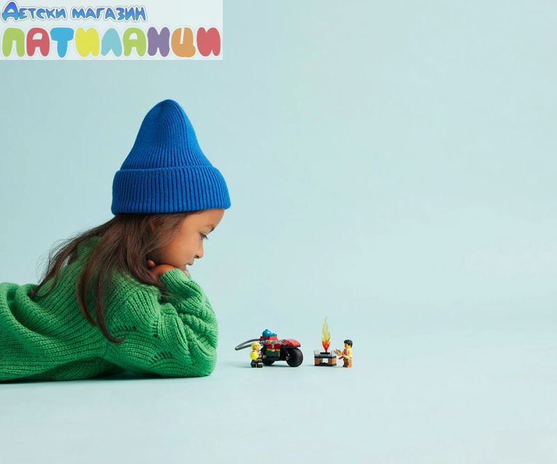 Пожарникарски мотоциклет – присъединете се към вашия малък строител за забавни истории и приключения със строителния комплект LEGO® City Противопожарен мотоциклет за деца над 4 години