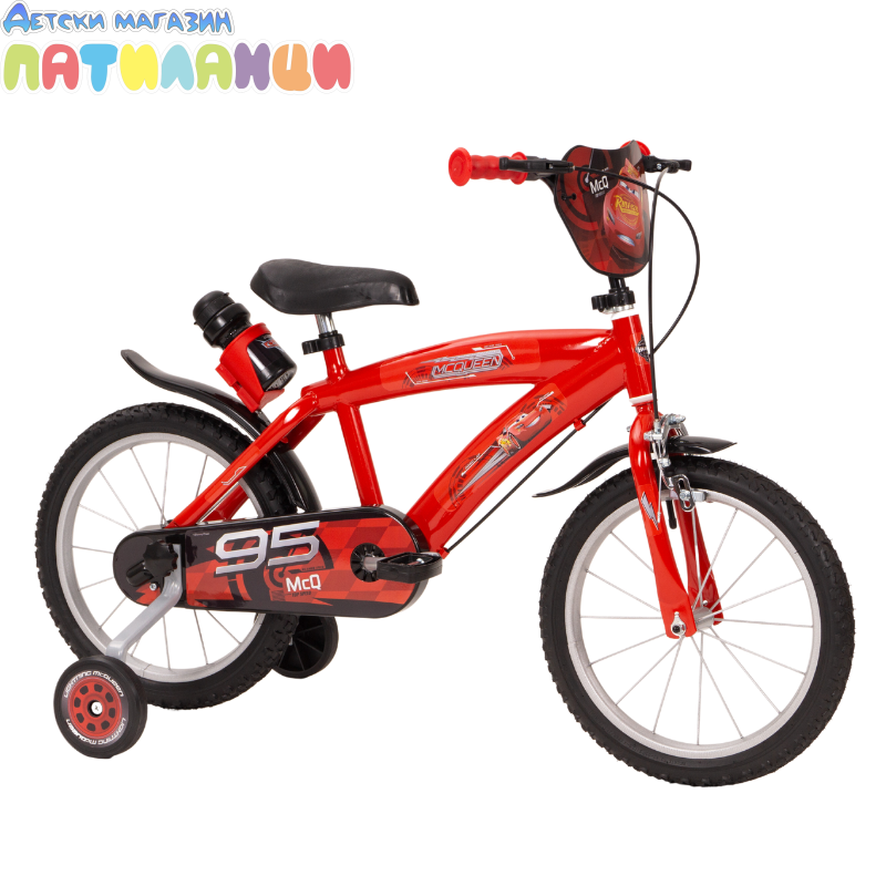 С този велосипед в цветен дизайн на Cars от DISNEY, младите състезатели са на първите си обиколки по особено шик и безопасен начин. Благодарение на подвижните помощни колела и регулируемата по височина седалка и кормило, велосипеда расте с размерите и уменията на ездача. Спирачката на джантата отпред и барабанната спирачка отзад, с удобни за децата дръжки на кормилото, гарантират безопасно ускорение. Обширното рефлекторно оборудване осигурява добра видимост от всички страни. Над веригата е монтиран предпазител, който предпазва от наранявания. По време на обиколки в лошо време калниците предпазват от дъжд и кал.