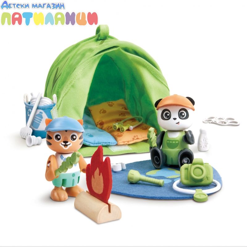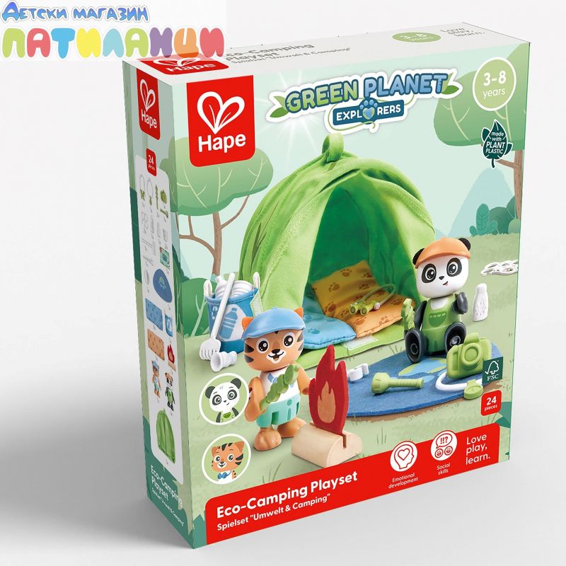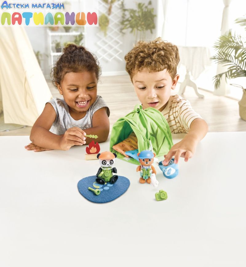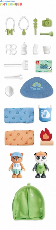 Този очарователен мини комплект за игра на открито използва фигурки, инструменти за къмпинг и забавни аксесоари, за да научи вашето дете на опазване на околната среда.