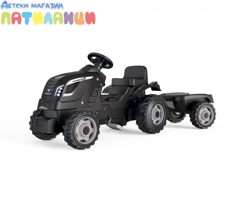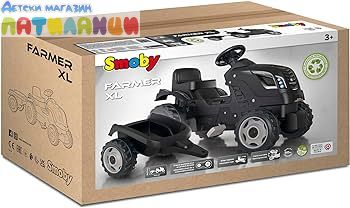 Да обработвате земята със собствен трактор? Това е лесно възможно с детския педален трактор Farmer XL от Smoby. Неговият модерен външен вид, перфектно оборудване, комбинирано с много добри характеристики на шофиране и функции за игра, правят здравия трактор идеалното превозно средство за деца на 3 и повече години. Благодарение на плавно работещото кормилно управление с въртяща се плоча и защитеното от мръсотия и прах вградено верижно задвижване, шофирането е детска игра, дори и на труден терен.