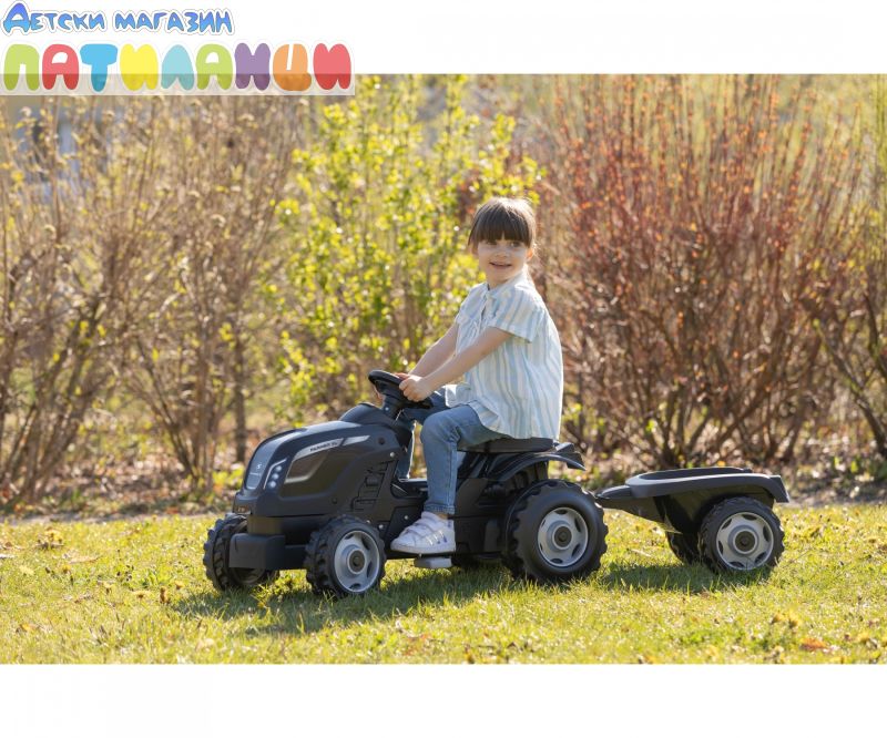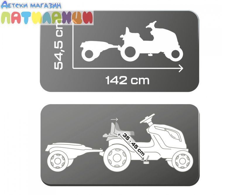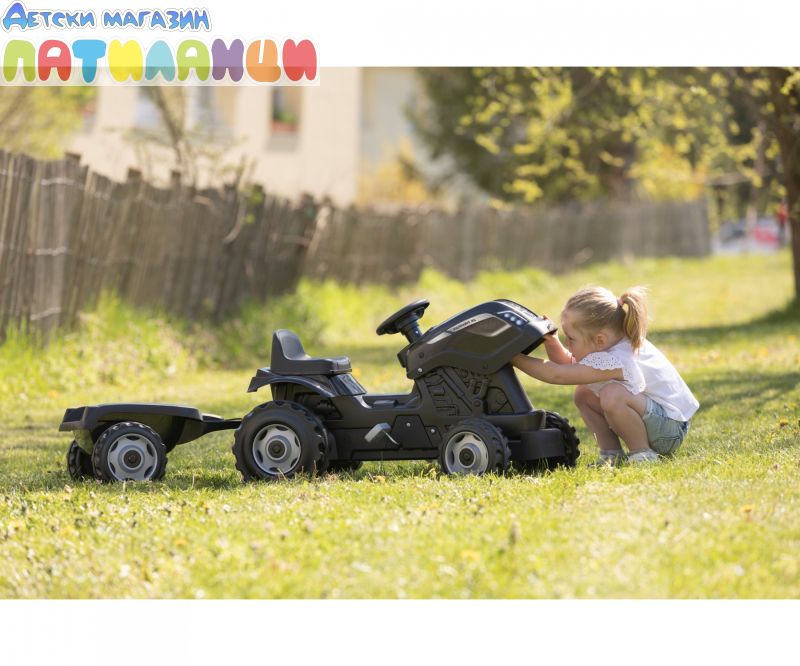 С педалите вашето дете може да се движи лесно и бързо по всякакви терени! Малкият фермер може да транспортира камъни, пясък и много други в страхотното подвижно ремарке!
