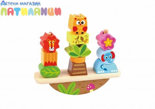 Дървена низанка, сортер и баланс в едно. Целта е детето да нанизва фигурките така, че да балансира.