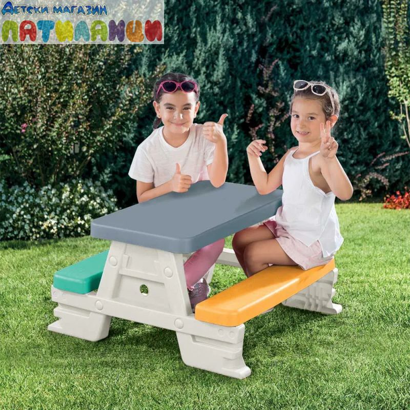 Детската маса може да се използва навън, за игра на двора и вкъщи.