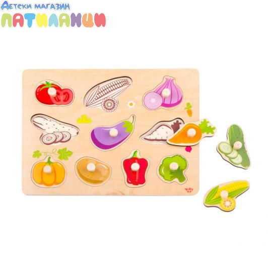 Дървен пъзел с дръжки зеленчуци Tooky Toy TY855