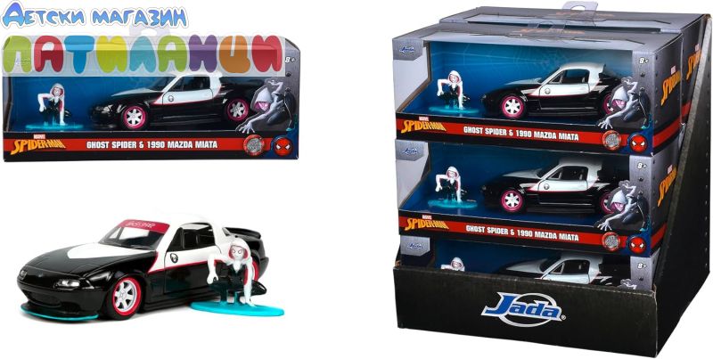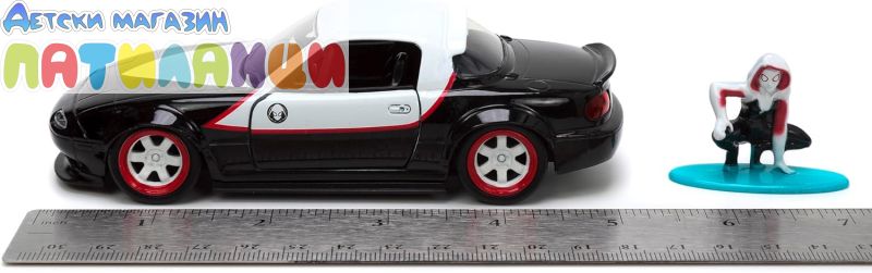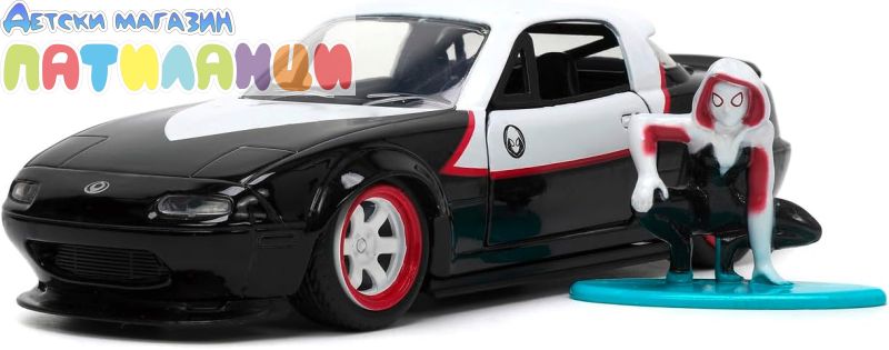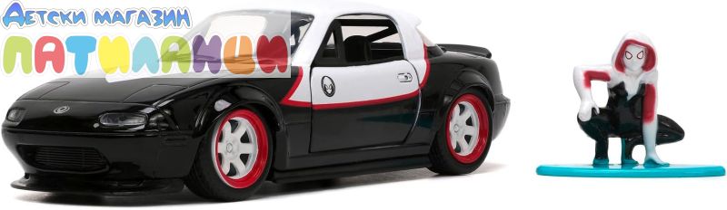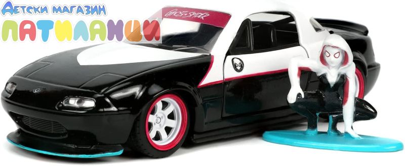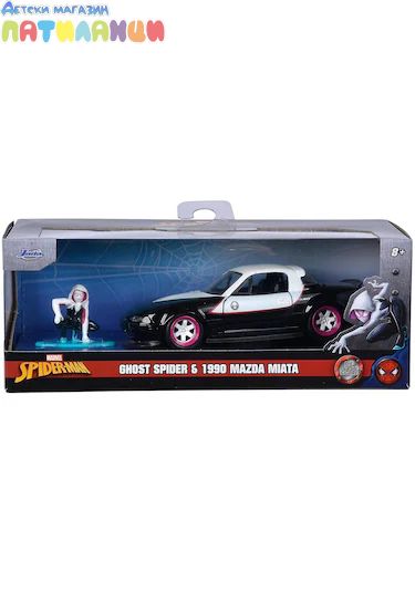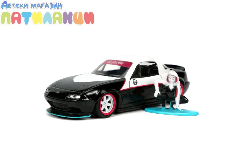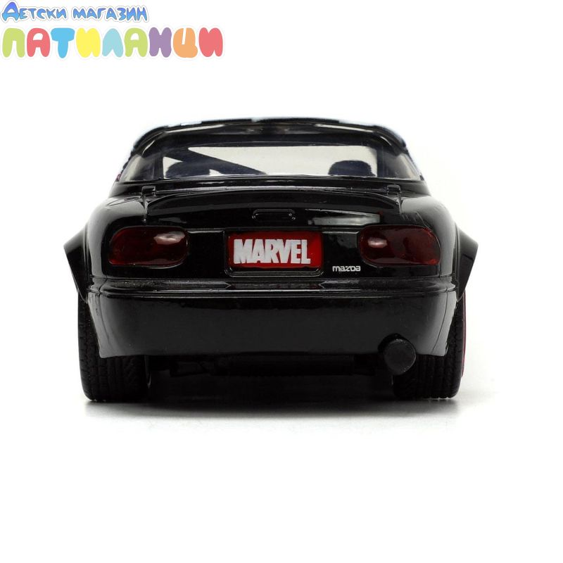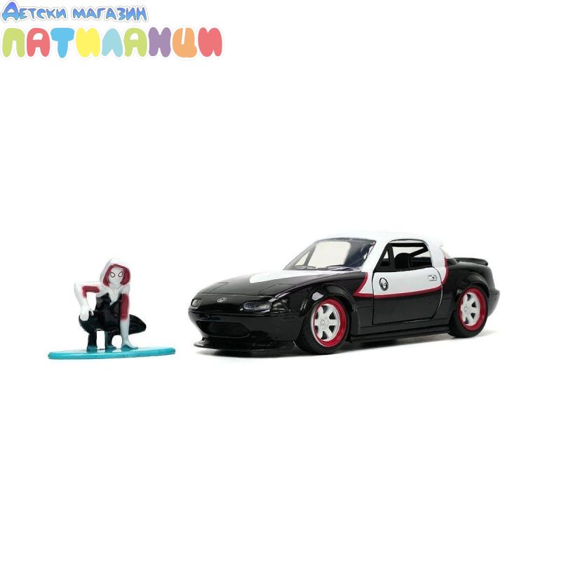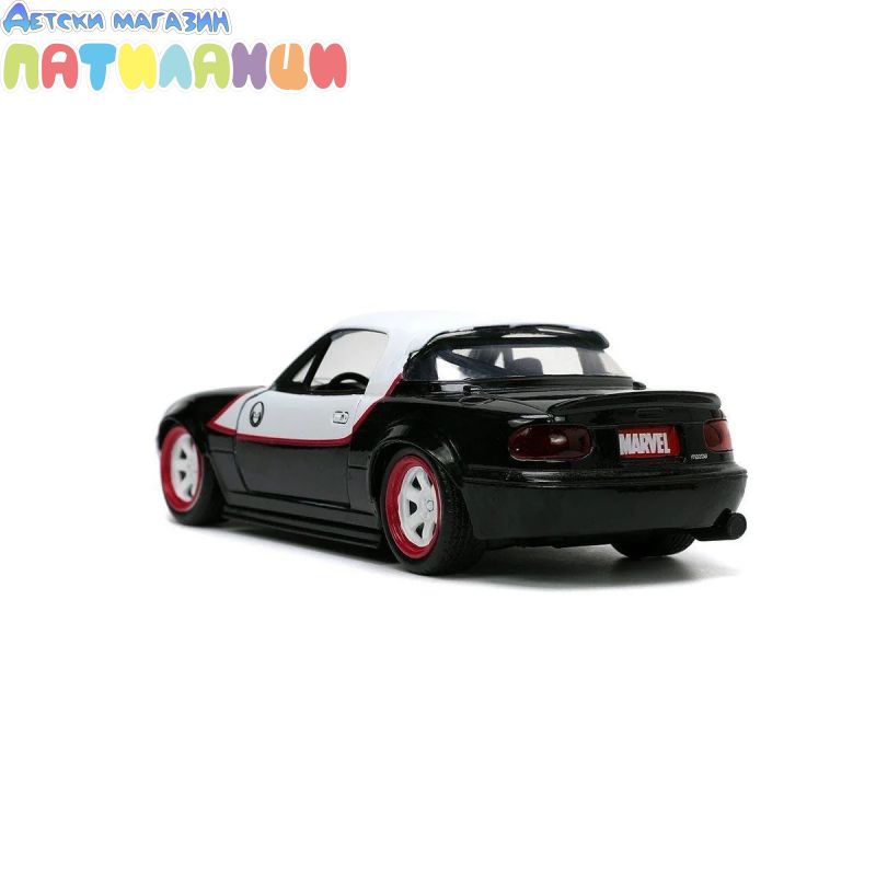 Метален автомобил Marvel Ghost Spider 1990 Mazda Miata Jada Toys 253223014 - 1/32