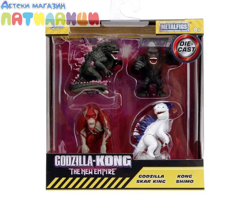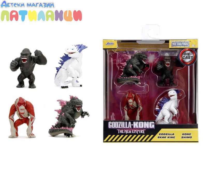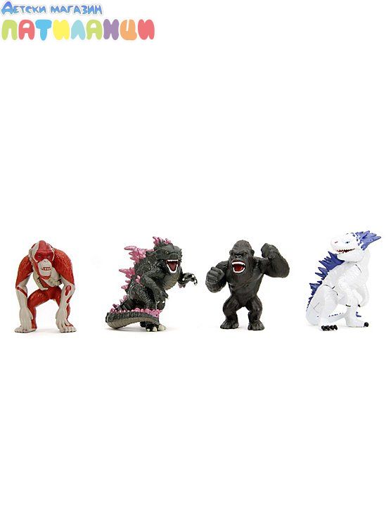 Официално лицензираните фигури са задължителни за феновете на най-новия филм Godzilla vs Kong, за да събират 4 персонажа: Godzilla, Kong, Shimo, Skar King. Фигурките са с височина около 6.5 см. Те ще се харесат на всички почитатели на емблематичната холивудска продукция.