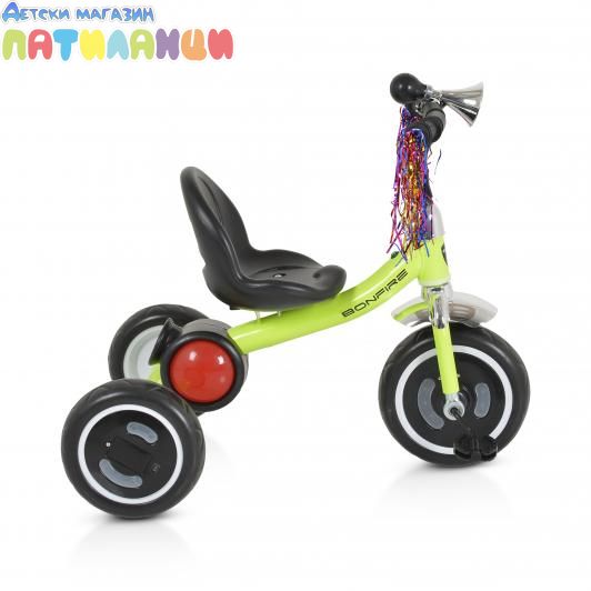 Продуктът е с меки EVA гуми, удобна седалка, клаксон, светлини на гумите, табло с мелодии и светлини.