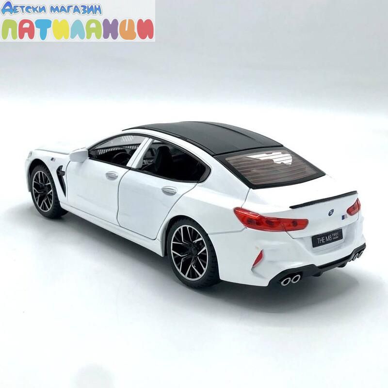 Метален автомобил BMW M8 със звук и светлини 1/24 бял