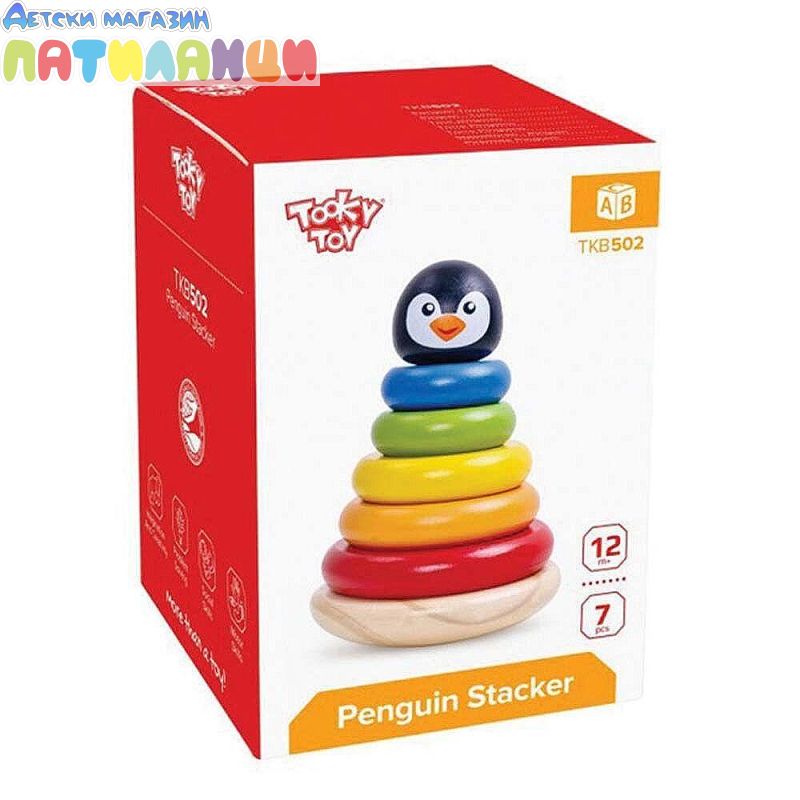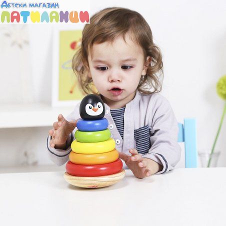 Дървена Бебешка низанка Пингвин Tooky Toy TKB502