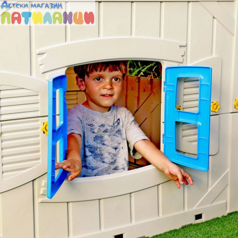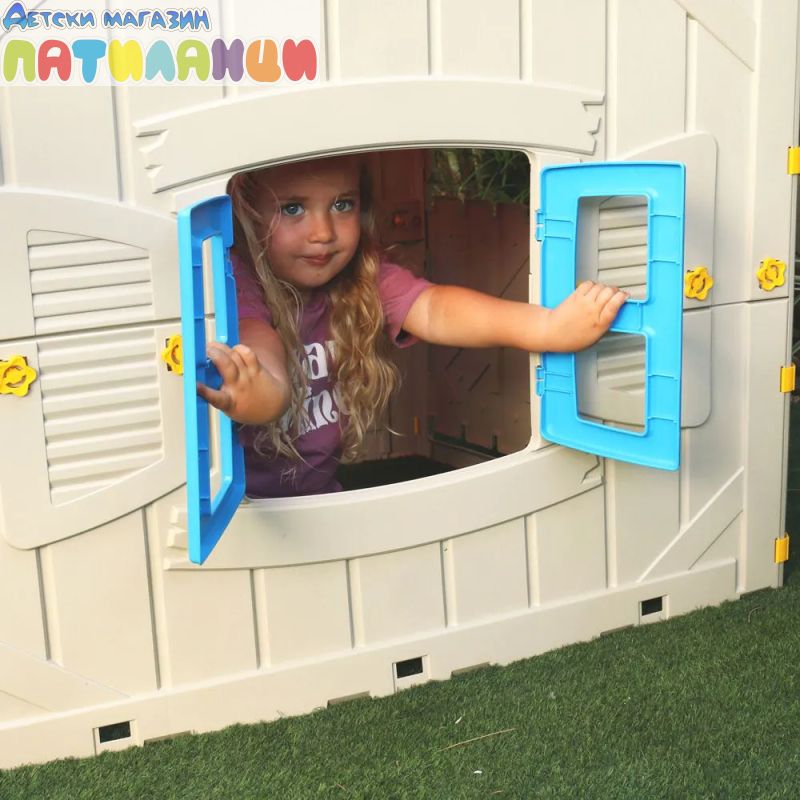 – перфектното място за безкрайни детски игри на открито! Тази къщичка за игра е създадена специално за деца над 2 години, осигурявайки им безопасно и забавно пространство за развитие на въображението..