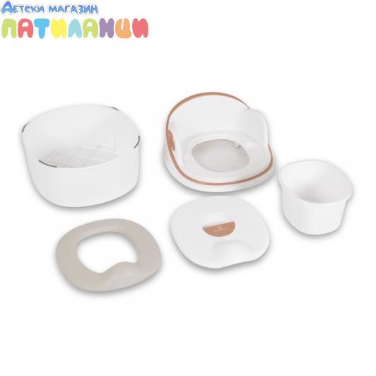 Може да се използва като класическо гърне , мек адаптер за тоалетна чиния или стъпало за баня.