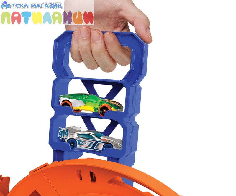 - Включени са две превозни средства Hot Wheels в мащаб 1:64, за да започнете да се състезавате веднага!