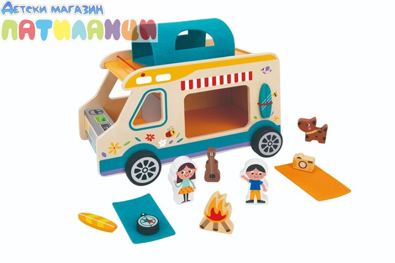 Дървен кемпер с фигури и аксесоари Tooky Toy TH427