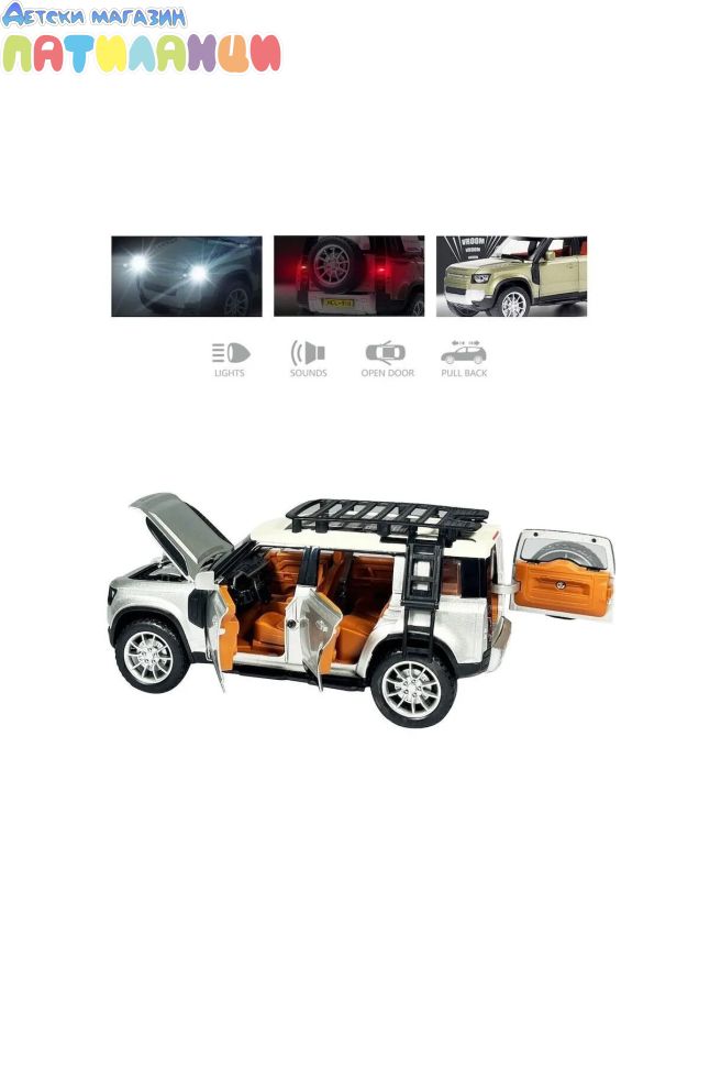 Метален джип Land Rover Defender със звук и светлини 1/22 сребрист