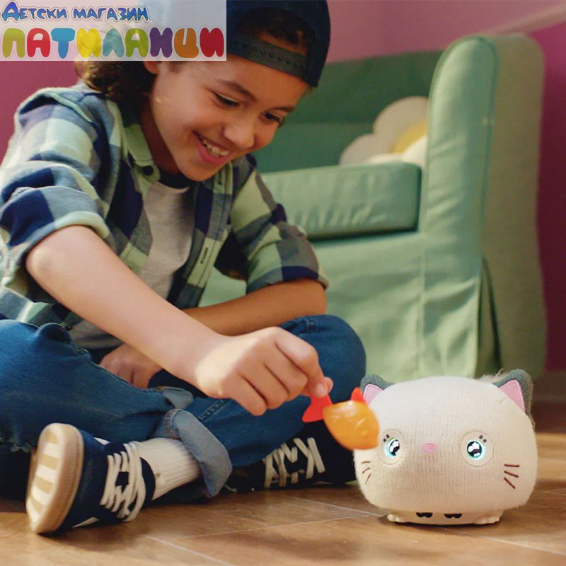 С над 75 различни мяукания, мъркания и звукови ефекти, Purro е изпълнен с индивидуалност. Оформяй опашката му с включените четка и панделка и избирай от седем режима на игра, включително изпращане на целувки, следване на играчката му, танцуване с музика, пеене в "мяукане" и отговаряне на въпроси. Няма нужда от приложения, Bluetooth или WiFi.